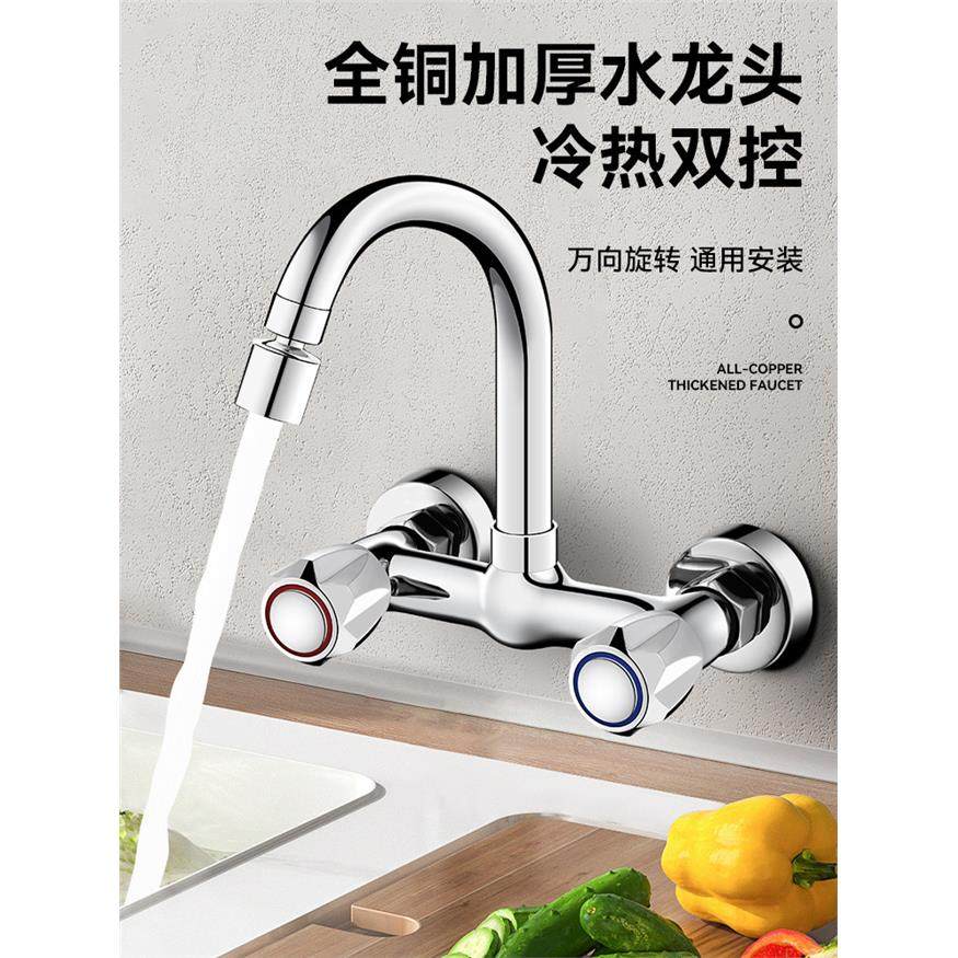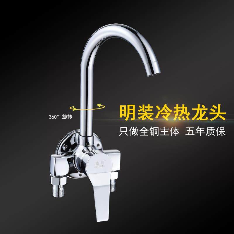 明装厨房水龙头全铜混水阀明管挂墙式洗衣池万向洗菜盆冷热水龙头