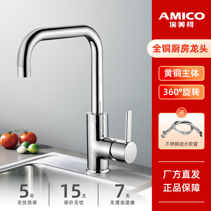 埃美柯amico厨房水龙头全铜冷热防溅水洗菜盆旋转水槽水龙头