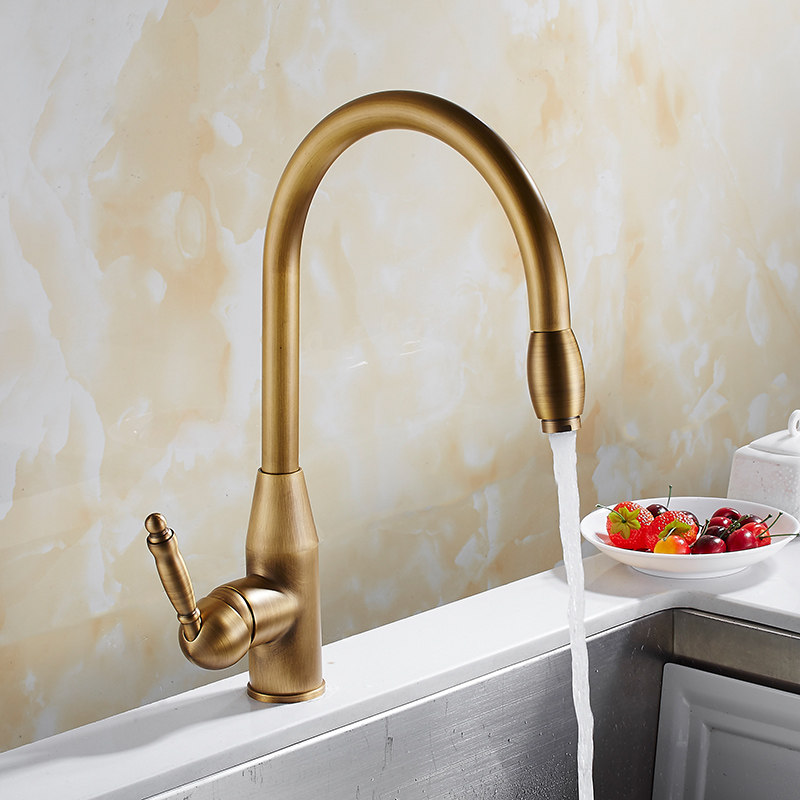 开平高端复古款古风抽拉厨房水龙头全铜可旋转伸缩大单水槽高级感