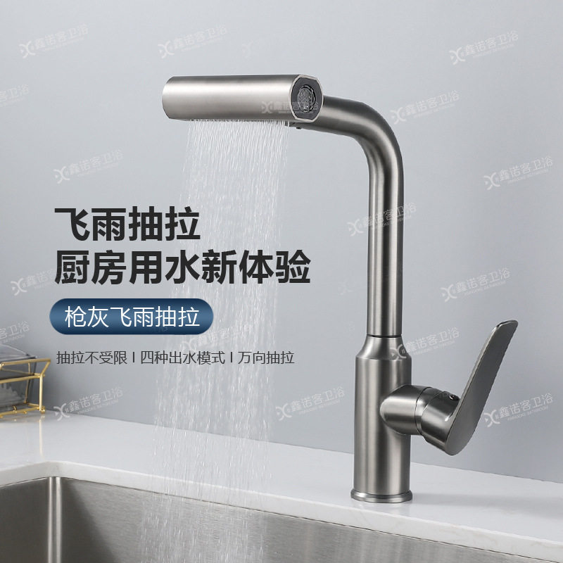 直销新款飞雨瀑布厨房水龙头全铜冷热万向抽拉式伸缩旋转洗菜盆菜