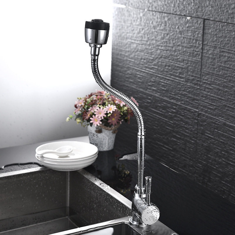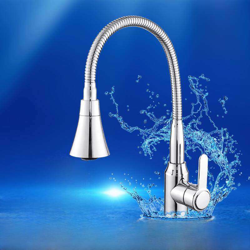 欧式厨房水龙头全铜体硅胶弯曲可旋转单孔冷热水萬向軟管廚房龍頭