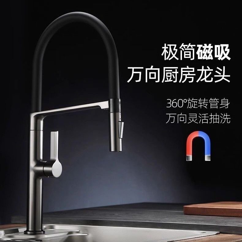 厨房水龙头全铜洗菜抽拉式冷热水槽洗碗池家用磁吸旋转厨房水龙头