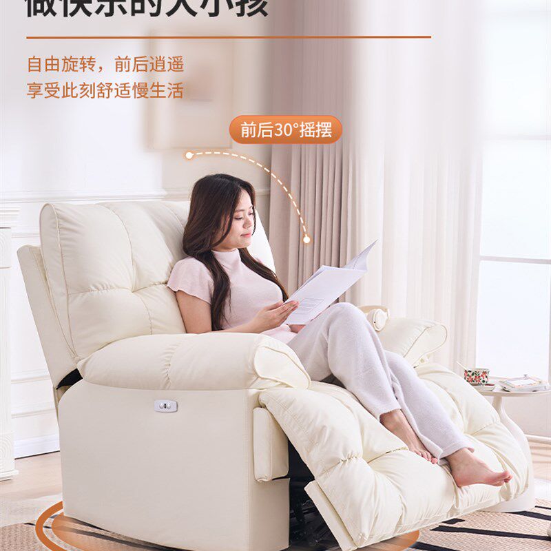 云朵单人沙发电动客厅旋转摇椅奶油风格头等舱按摩椅多功能懒沙发