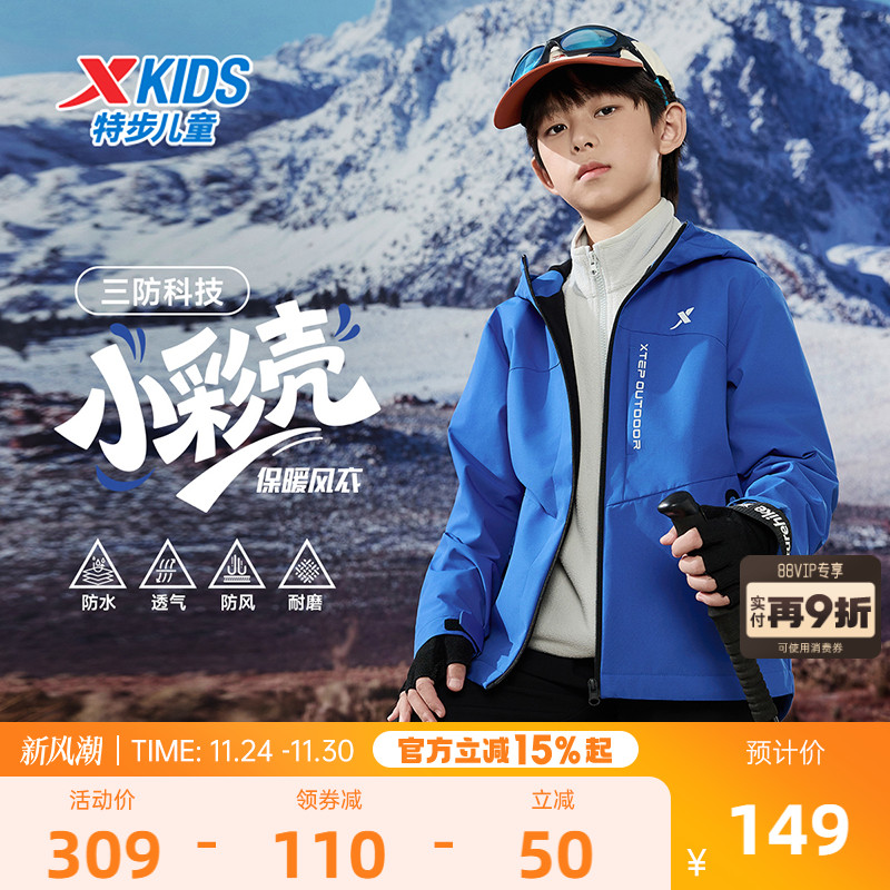 小彩壳|特步童装儿童外套男童冬季户外防风加厚款摇粒绒加绒上衣