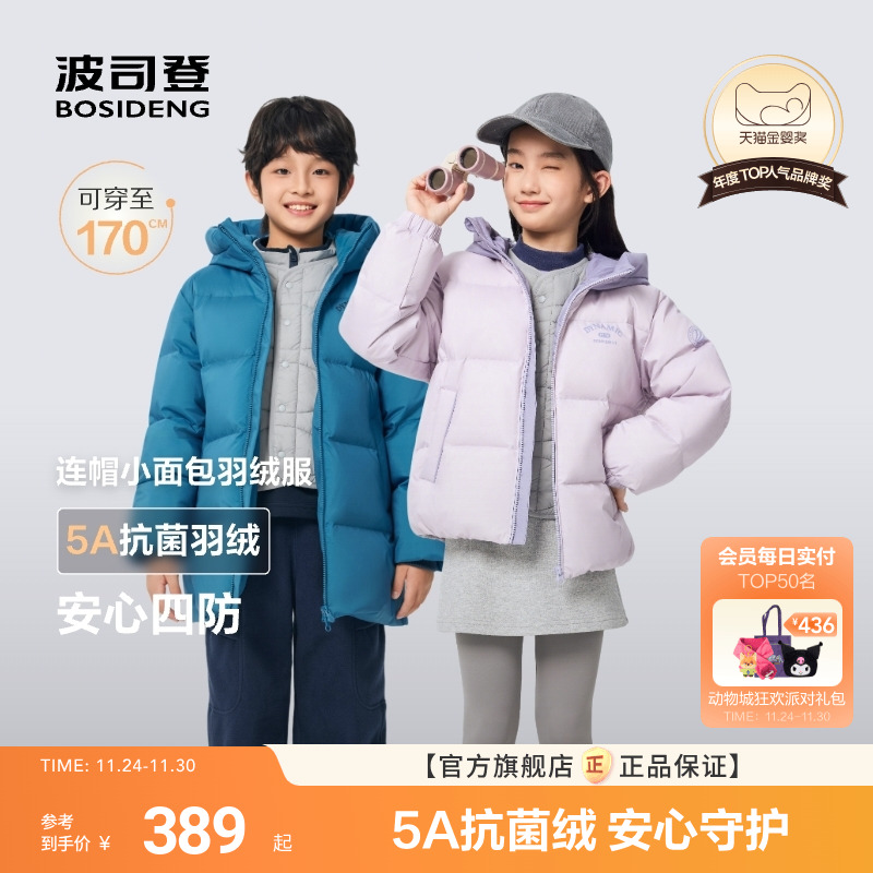波司登儿童羽绒服女童四防长款25秋冬加厚中大童冬季连帽外套男童
