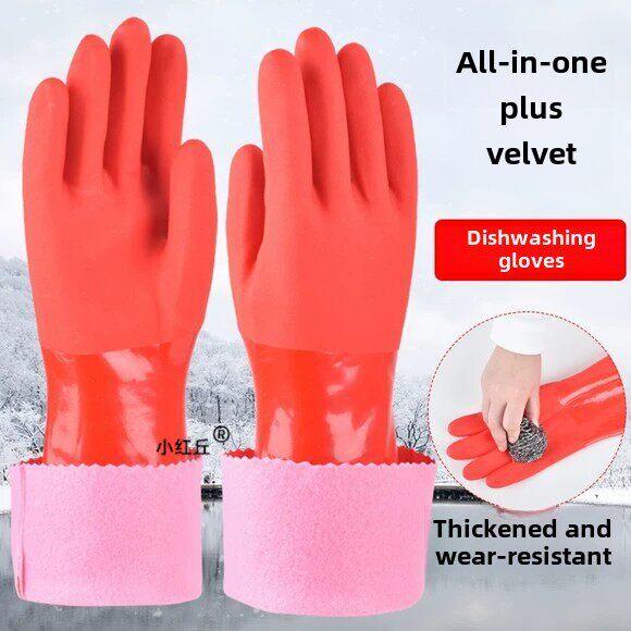 丁腈手套一体绒家务洗碗厨房耐用型加厚加绒洗衣服做饭防水刷锅碗
