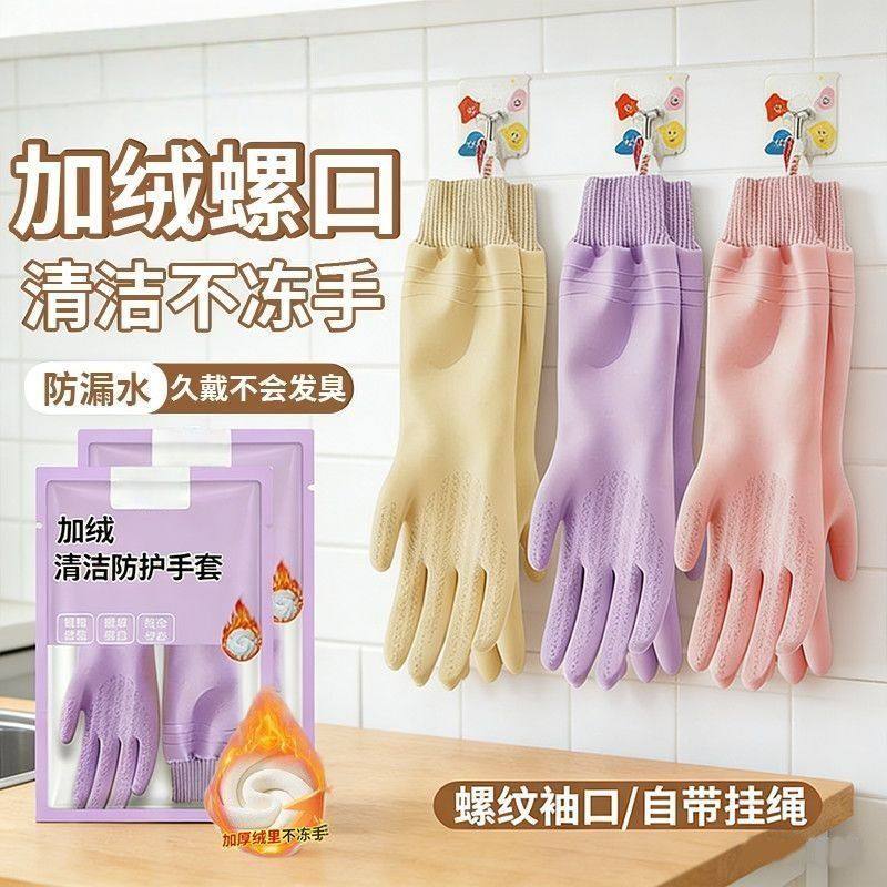 洗碗手套女防水耐用厨房家务洗衣服胶皮橡胶加厚加绒保暖清洁专用