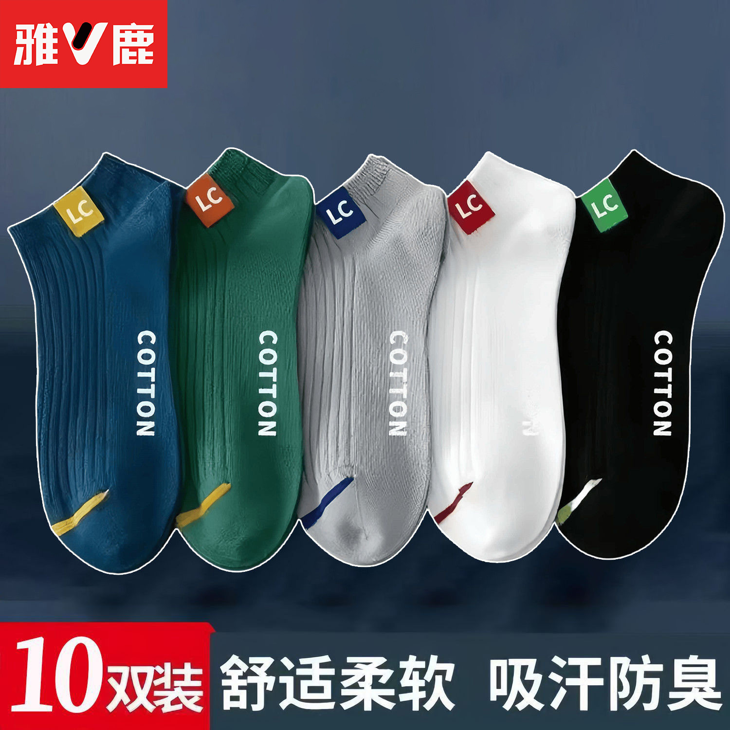 雅鹿男士袜子秋冬季吸汗防臭短筒袜透气抗菌运动男袜耐磨短款船袜
