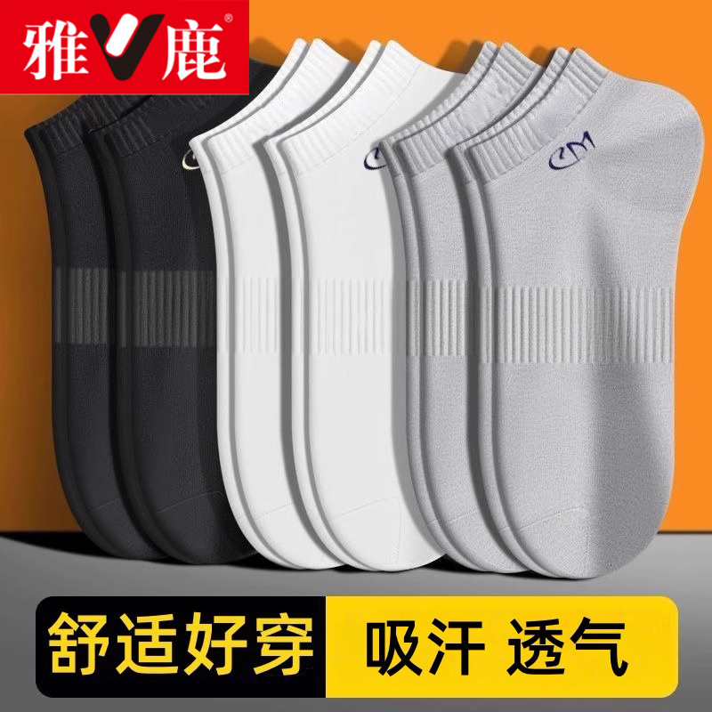 雅鹿袜子男秋冬季薄款短筒袜吸汗防臭袜男士运动款7a抗菌透气船袜