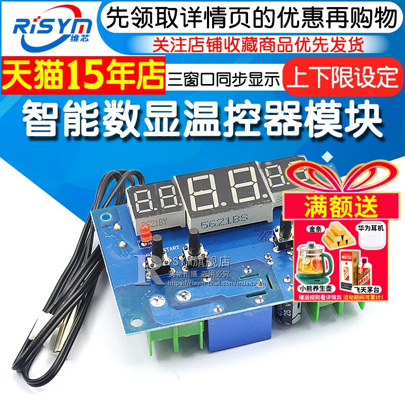Risym 智能数显温控器温度控制器模块 上下限设定三窗口同步显示