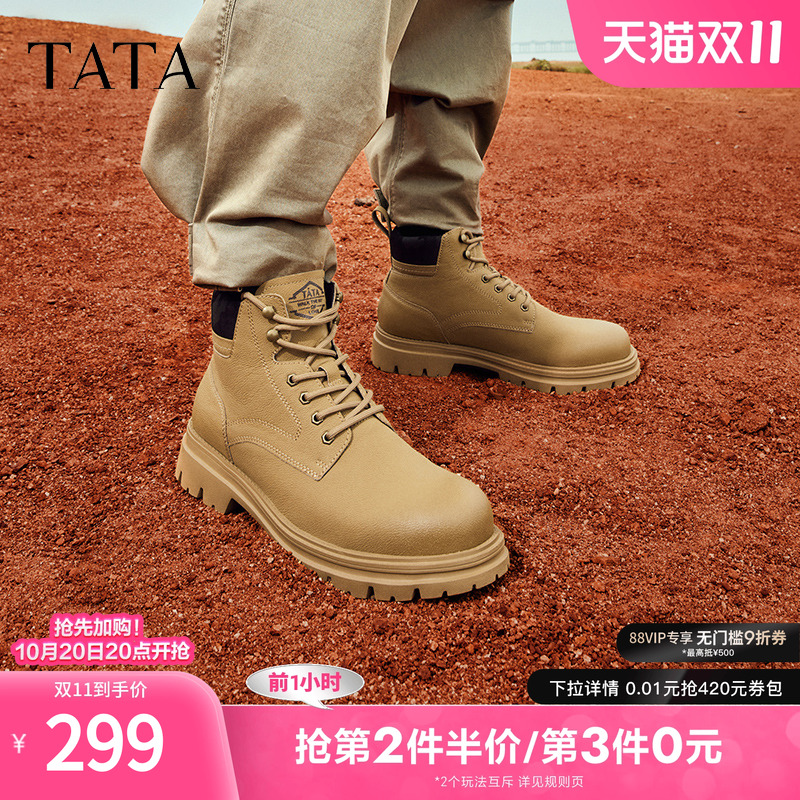 TATA他她英伦马丁靴男款加绒真皮复古短靴大黄靴男靴冬季28949DD3