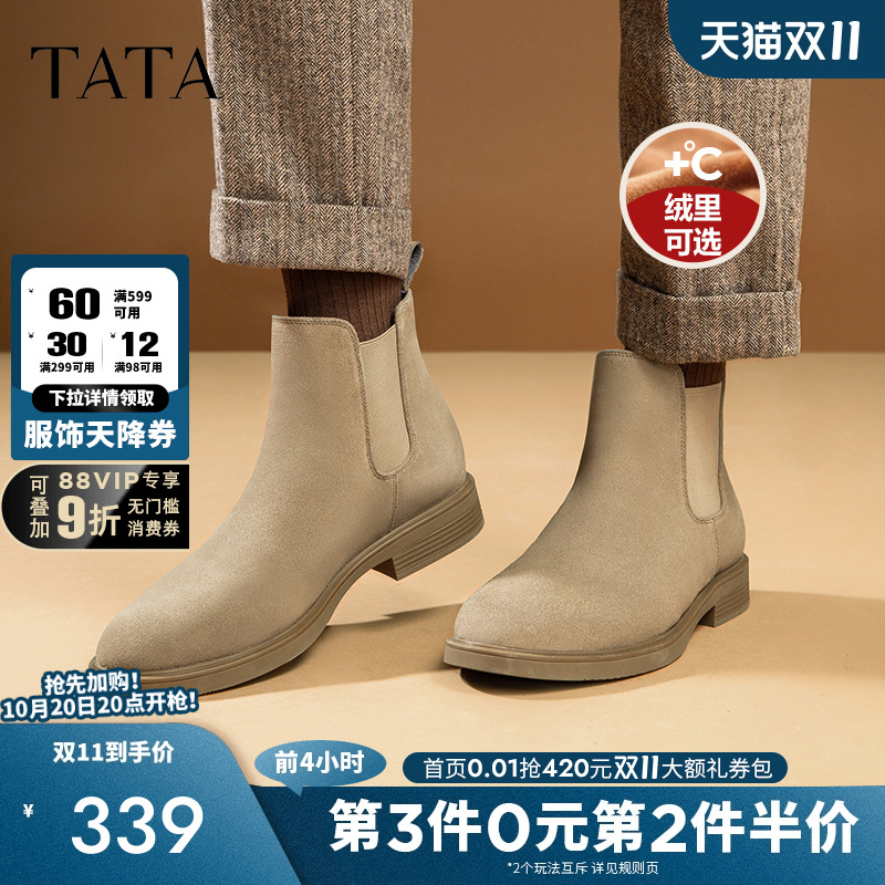 Tata他她切尔西靴男烟筒靴英伦牛皮加绒短靴秋冬新款男靴VVX02DD2