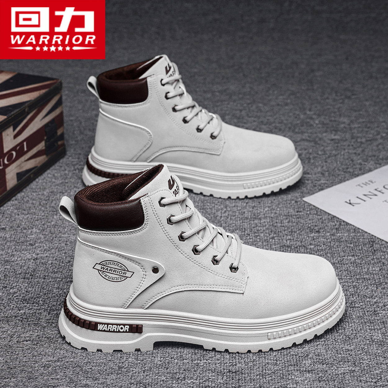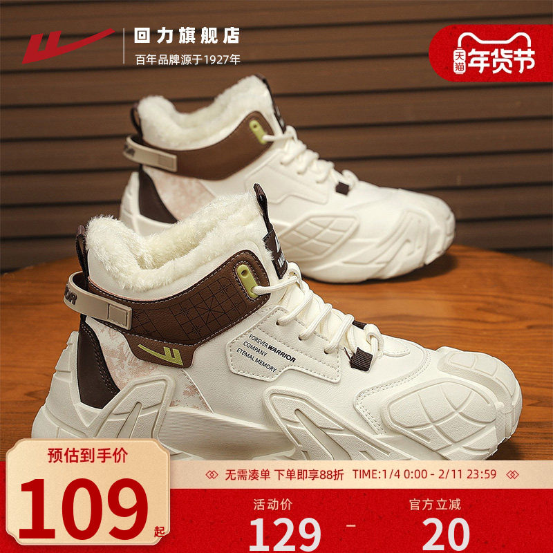 回力鞋子男鞋马丁靴男2026新款冬季白色靴子英伦风高帮工装靴男士
