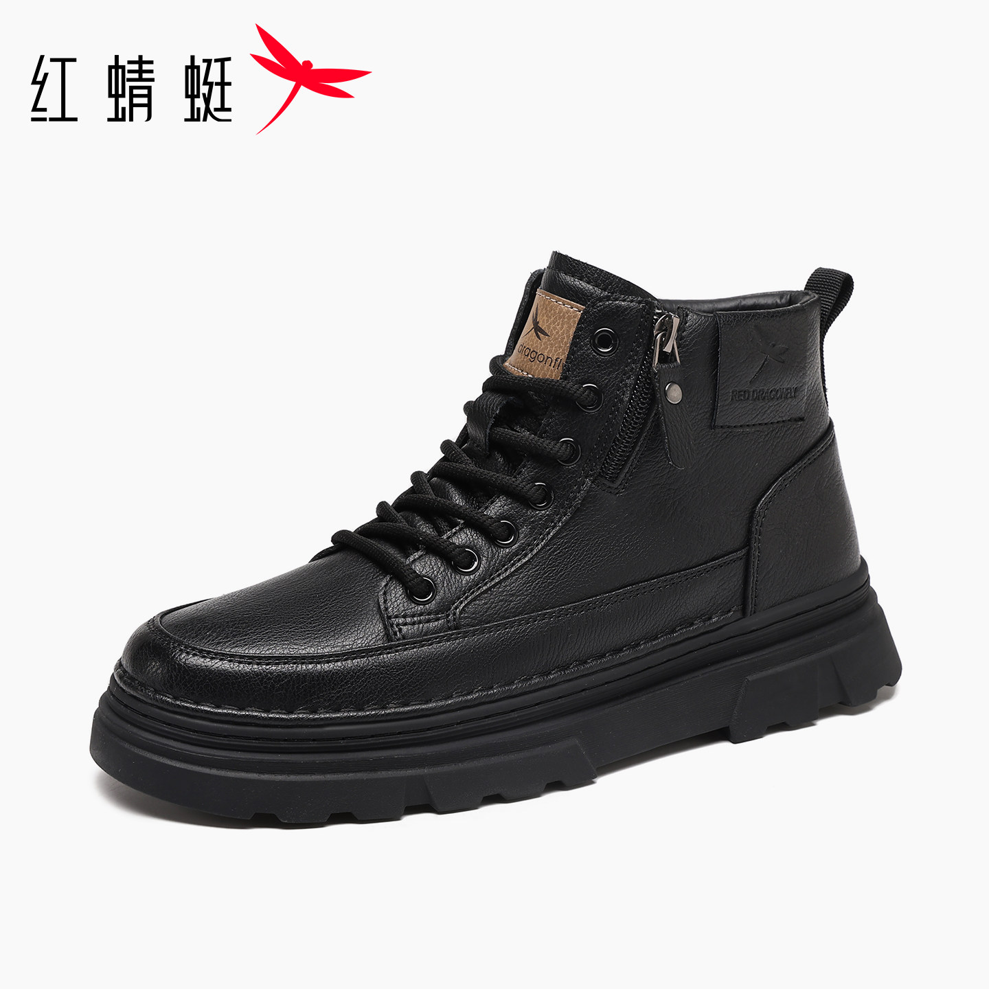 红蜻蜓男鞋秋冬新款鞋子男士高帮工装鞋马丁靴男款真皮英伦风皮鞋