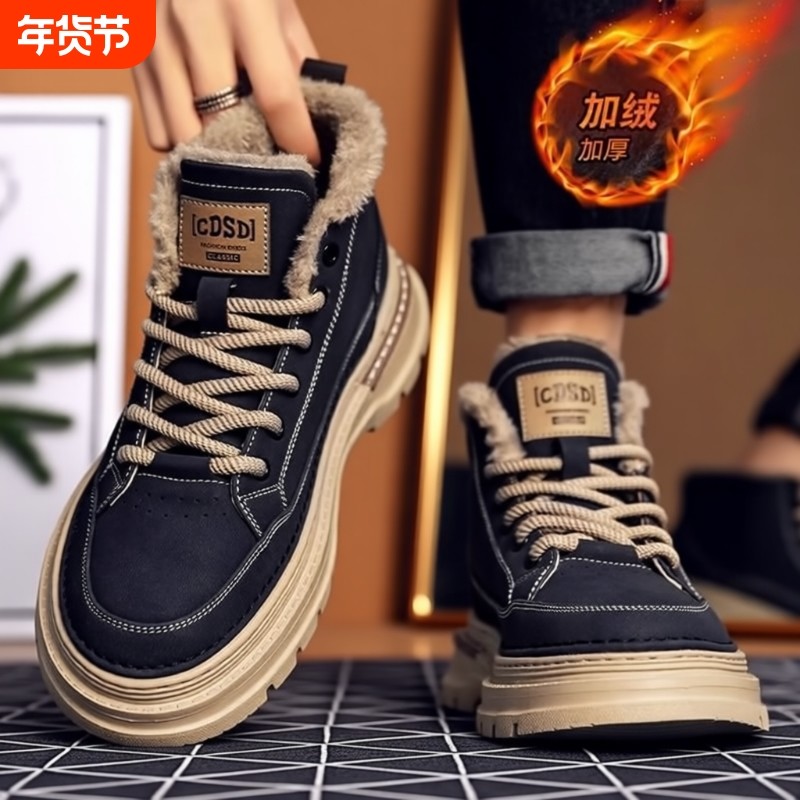 大嘴猴高帮板鞋男2025新款冬季加绒保暖棉鞋休闲马丁鞋东北雪地靴