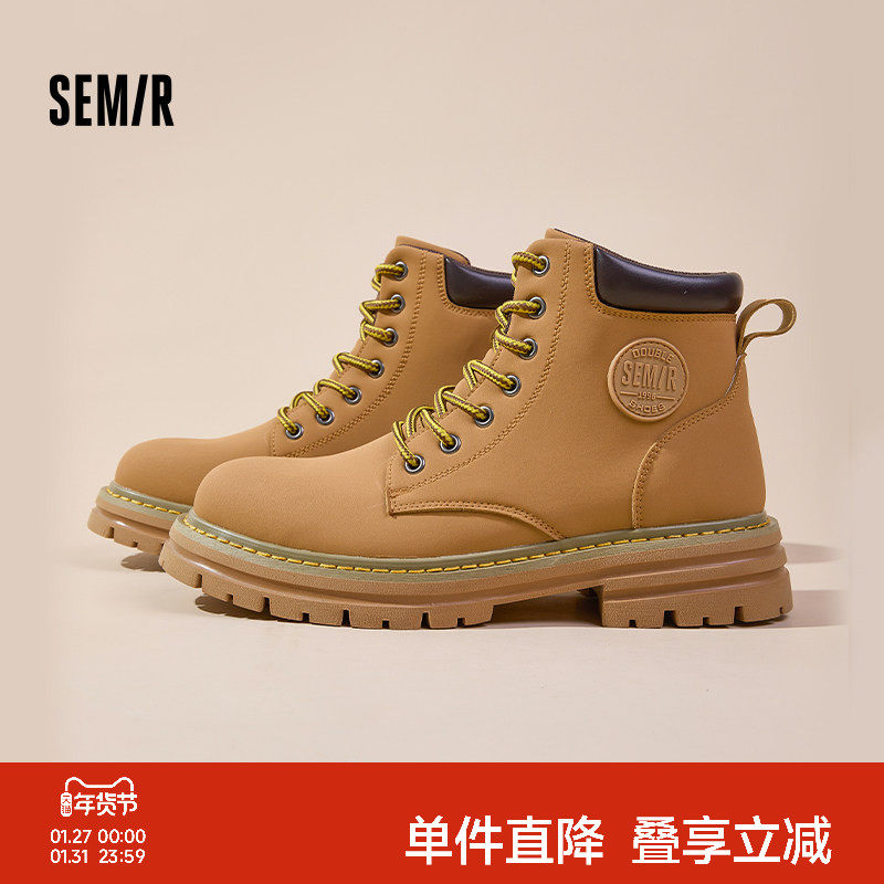 Semir男鞋马丁靴男款2025秋冬新款中帮大黄靴男士复古户外工装靴