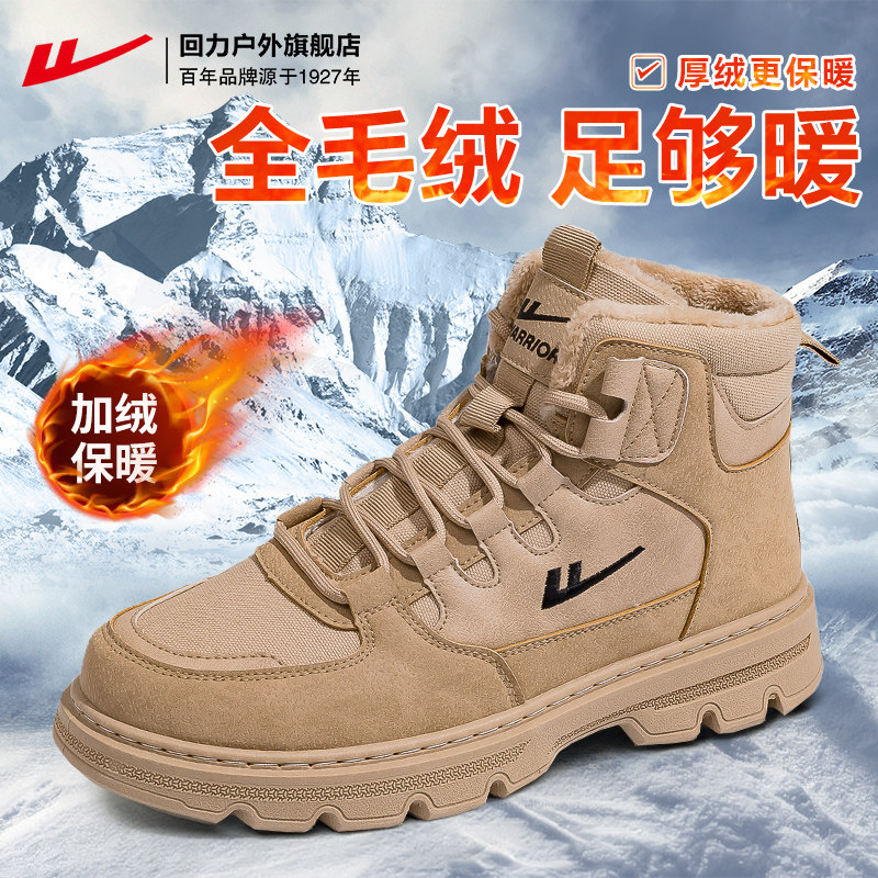 回力雪地靴男鞋冬季户外加绒登山鞋马丁靴男士休闲东北保暖大棉鞋