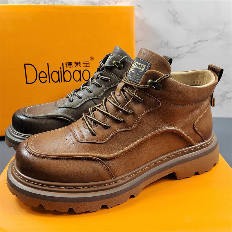 外贸牛筋厚底真皮男鞋高帮鞋马丁靴男工装靴子休闲沙漠靴牛皮短靴