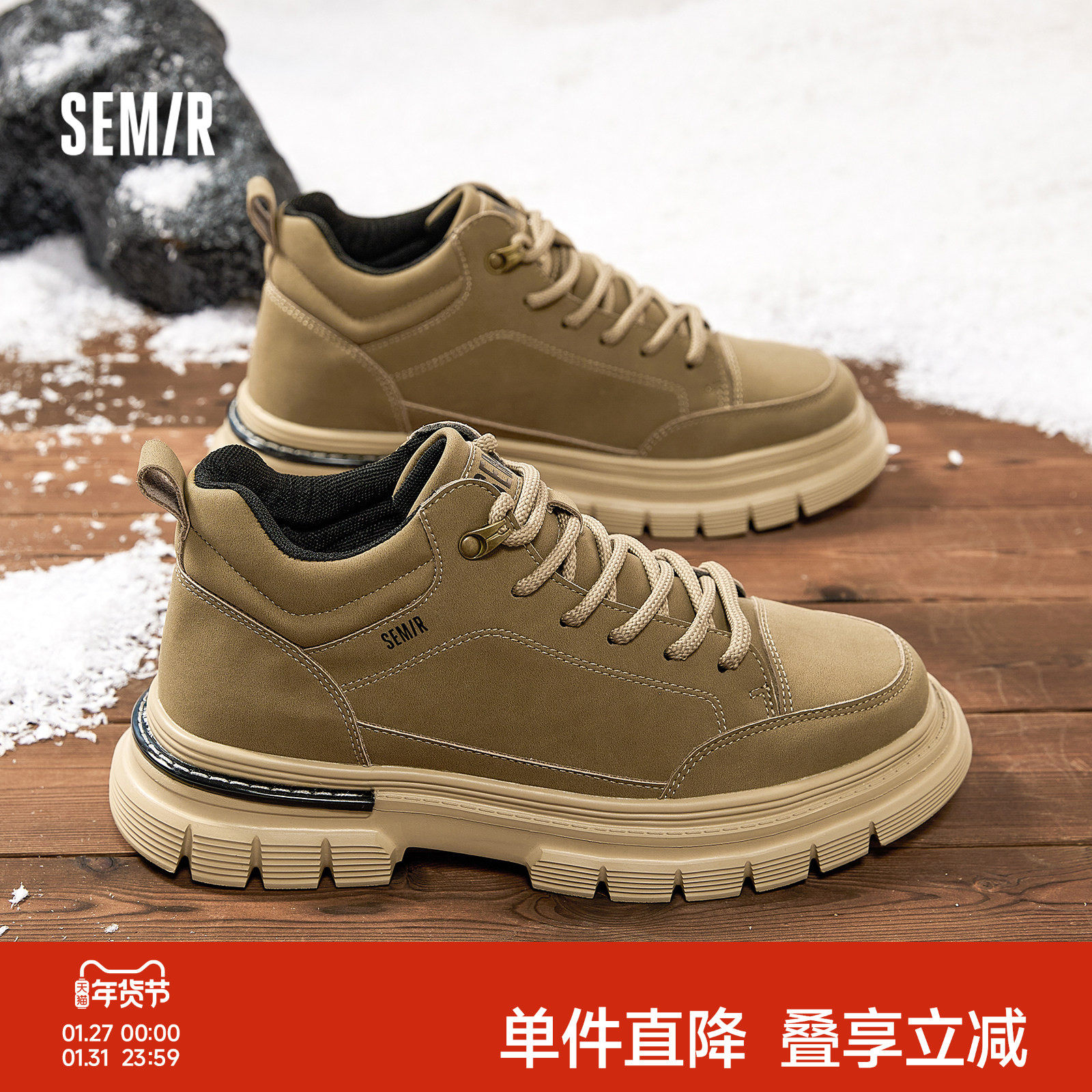 Semir男鞋马丁靴男款2025秋冬季新款男士户外工装靴百搭登山靴子