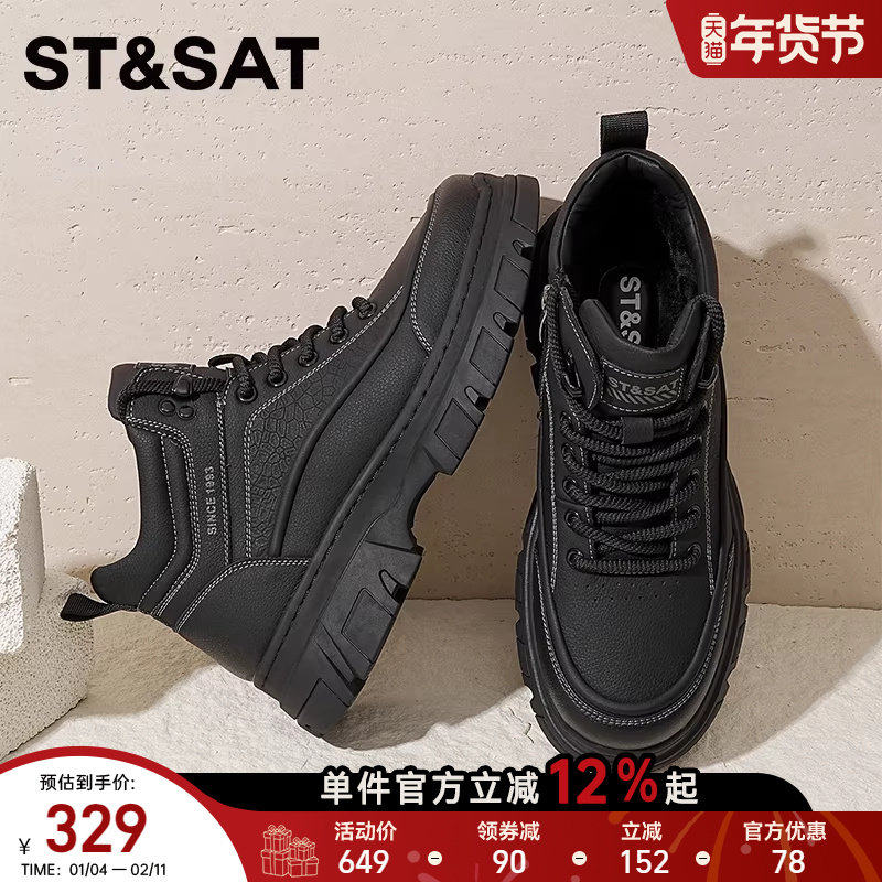 星期六男鞋马丁靴男士秋冬季爆款2025新款加绒棉真皮高帮板鞋子男