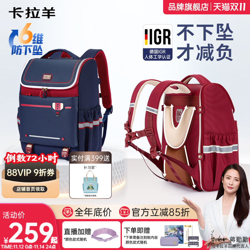 【双11底价】卡拉羊3-6年级小学生书包减负护脊超轻儿童双肩包男女生初中生背包大容量高中生书包官方旗舰店