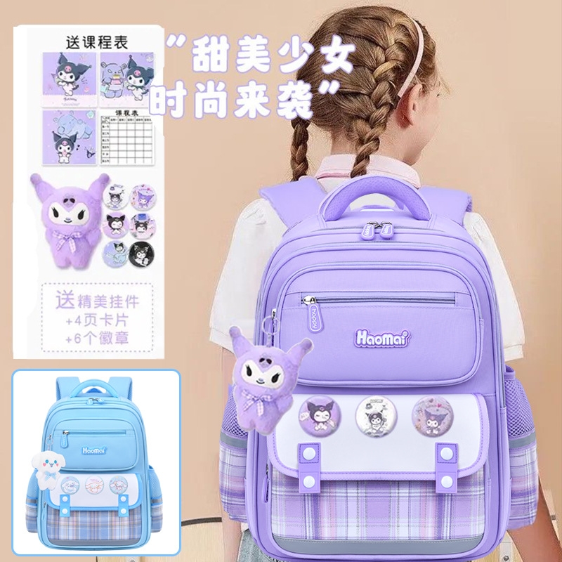小学生女孩书包1-3-6年级新款超轻护脊减负大容量可爱女双肩包带挂饰库洛米