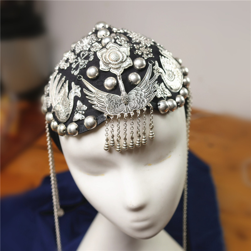 杨丽萍孔雀款帽子民族风手缝仿老银个性发箍头饰时尚百搭休闲帽女