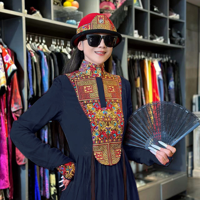 杨丽萍官方原创设计雀云裳民族风国风新中式绣花长袖连衣裙春夏秋
