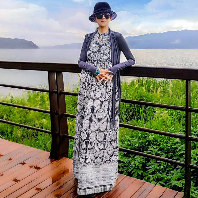 杨丽萍官方原创设计雀云裳民族风云南棉麻蜡染优雅精致高级连衣裙