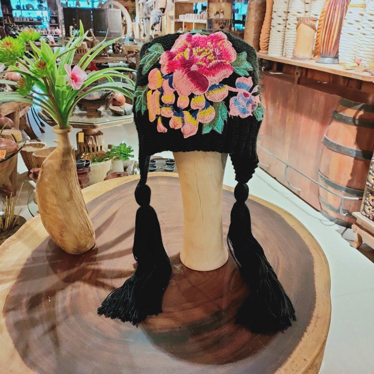 杨丽萍民族国风流苏刺绣花针织帽纯手工秋冬天保暖护耳包头帽子女