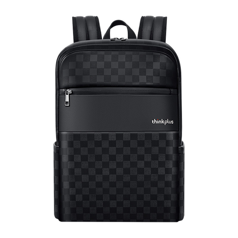 联想thinkplus 大容量时尚格纹元素现代休闲双肩包 有防盗拉链 黑色 4X41Q22844