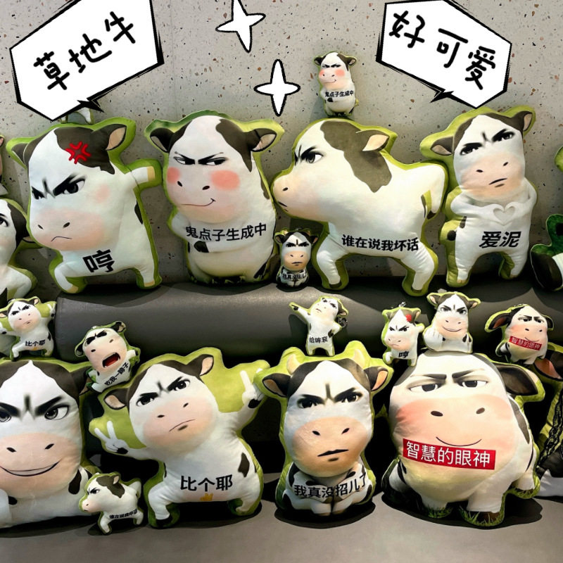 可爱草地牛毛绒玩偶抽象表情包公仔挂件抽象牛牛靠垫抱枕玩偶礼物