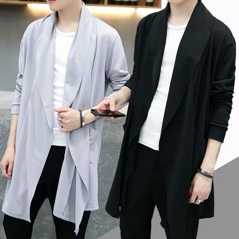 春夏季中长风衣男韩版长款u过膝修身帅气学生青年潮流薄款披风外