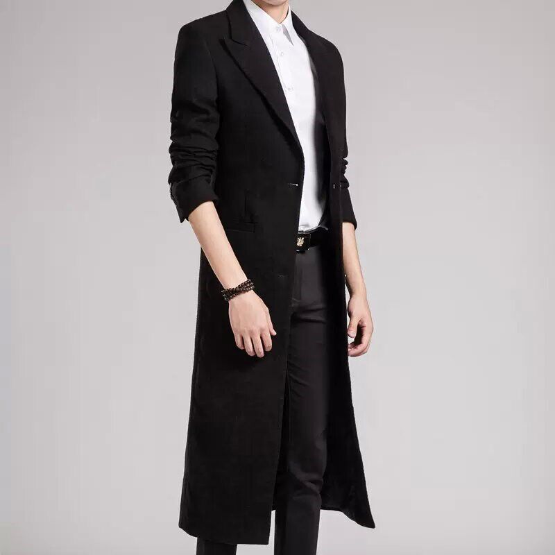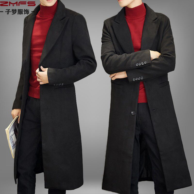 1超长风衣加长款过膝保暖呢子大衣男士潮流秋装修身英伦毛呢外套