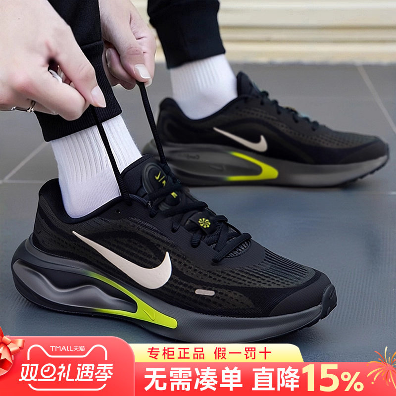 Nike耐克男鞋JOURNEY RUN黑黄色运动鞋缓震轻便跑步鞋FN0228-008