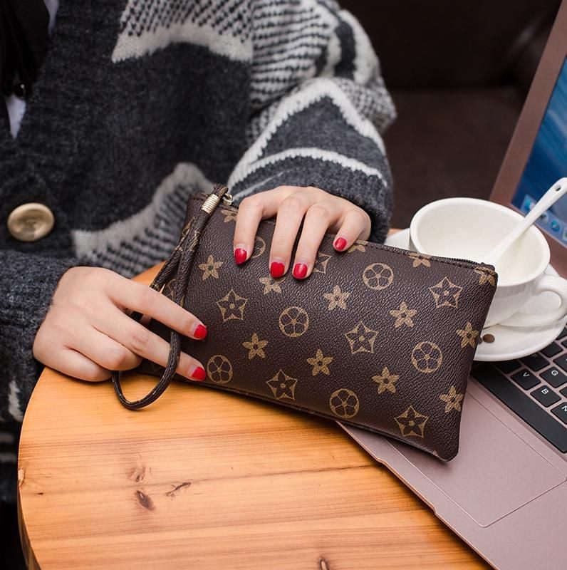 手拿包女拉链长款钱包大屏手机包大容量多隔层手腕包新款印花手包
