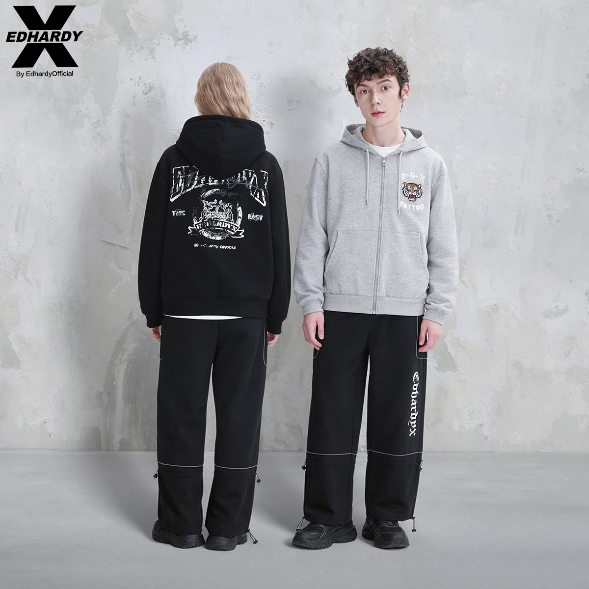 EDHARDY X2026春季新款男女同款连帽拉链前胸小印花卫衣休闲外套