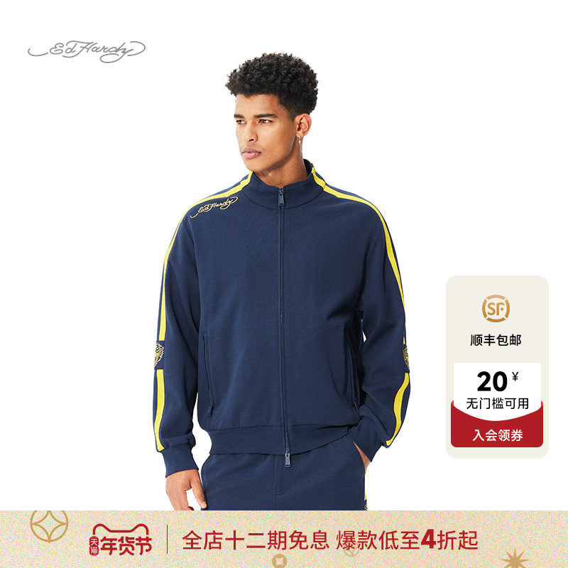 Ed Hardy埃德哈迪冬季新款男士拉链衫开衫卫衣学院风夹克外套