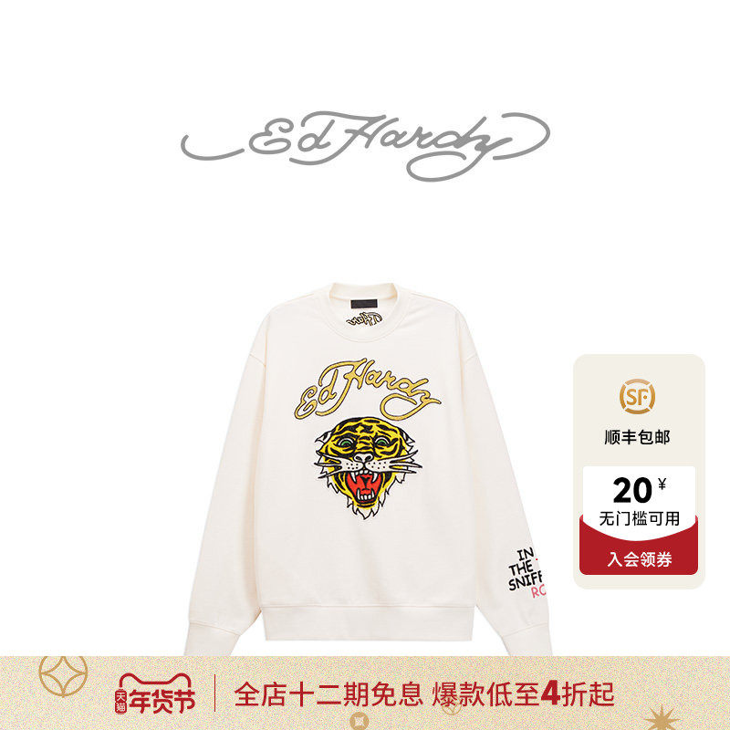 小姐姐全球购ED HARDY 毛巾刺绣虎头拼贴 套头卫衣 男款 23冬Z035