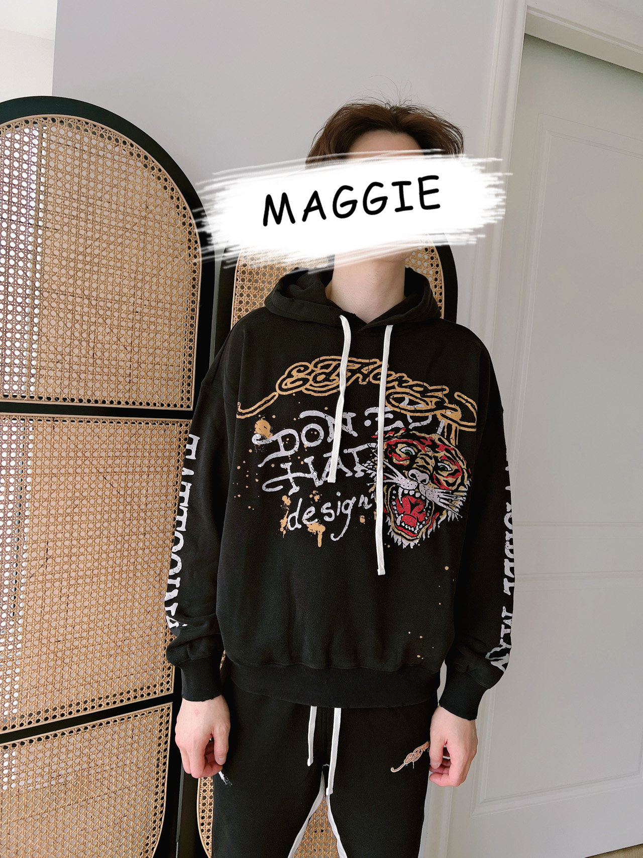 小姐姐全球购ED HARDY 毛巾刺绣虎头水钻 帽衫卫衣 男款23冬Z04