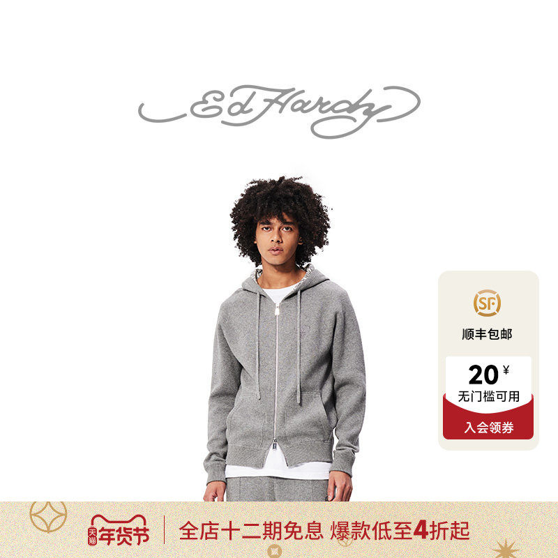 Ed Hardy埃德哈迪冬季新款美式复古男士拉链衫开衫连帽卫衣