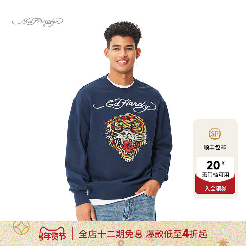 小姐姐全球购ED HARDY水钻虎头印花 套头卫衣 男款23冬Z035