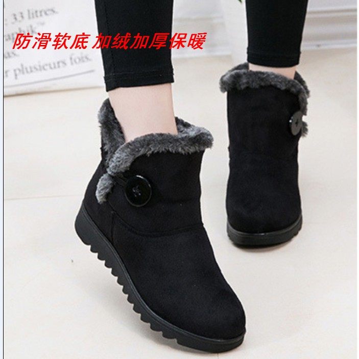 真皮羊毛妈妈鞋冬季短靴保暖中老年雪地靴女棉鞋加厚防滑软底棉靴