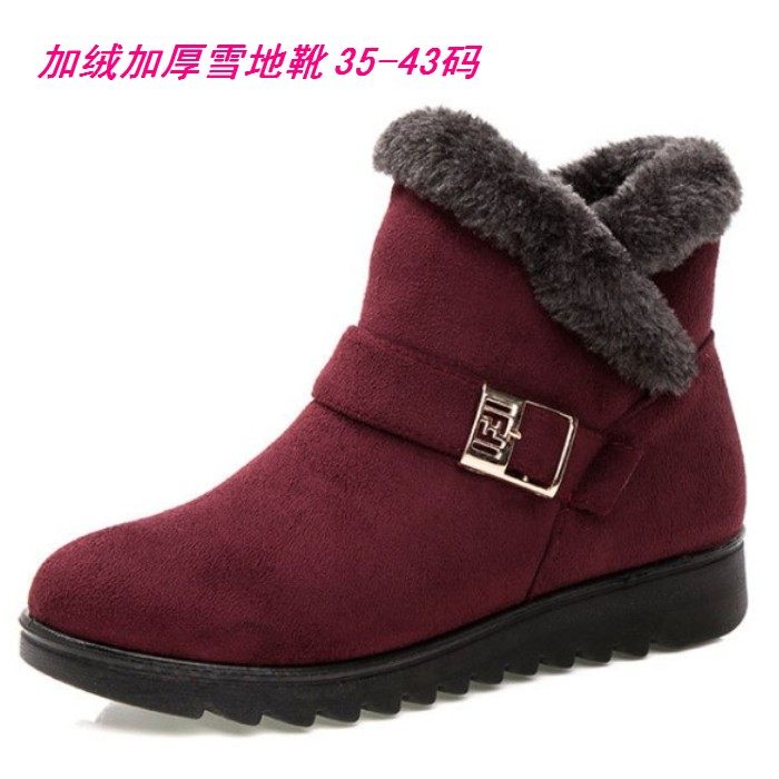 加绒雪地靴女冬季防滑保暖短靴加厚毛毛棉鞋软底防滑棉靴4243大码