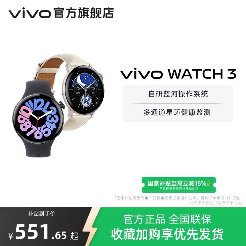 【国补至高15% 直播间抢红包】vivo WATCH 3智能手表运动跑步长续航通讯电子手表手机血氧心率睡眠