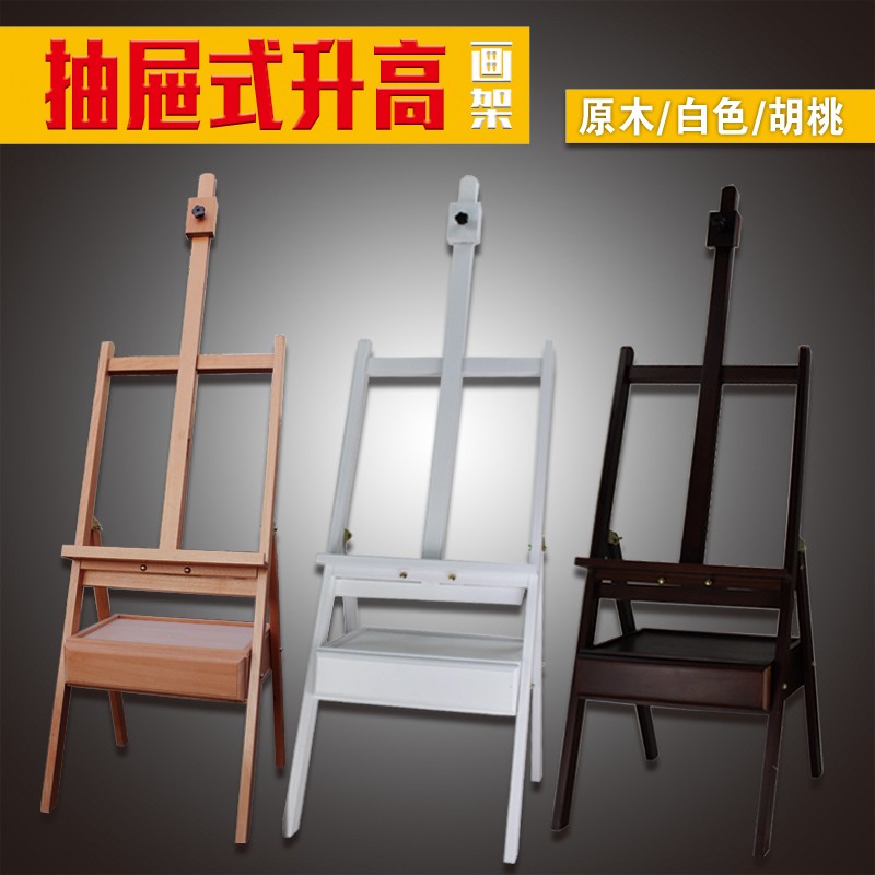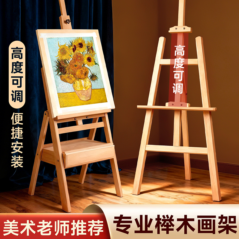 榉木画架原木画架美术生专用儿童家用素描画架支架式可折叠油画专用架平立两用抽屉画画写生实木丙烯画架画板