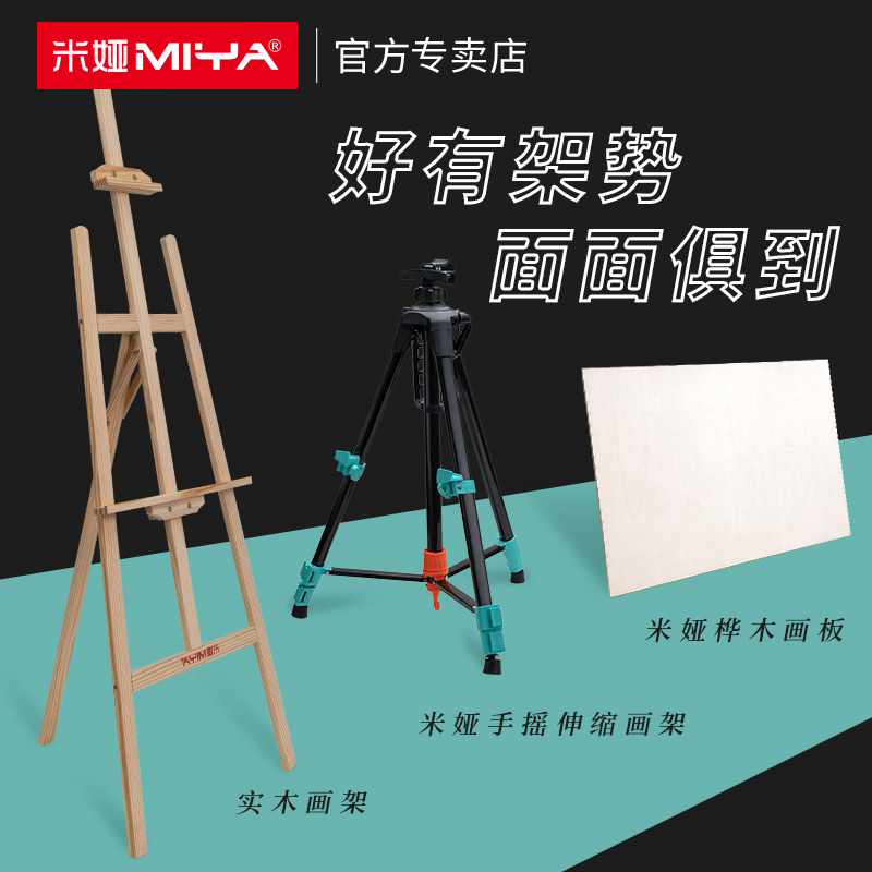 米娅画架美术生专用支架式可折叠画板便携手摇画架实木画架木制油画架学生画架素描画架4K画板绘画工具套装