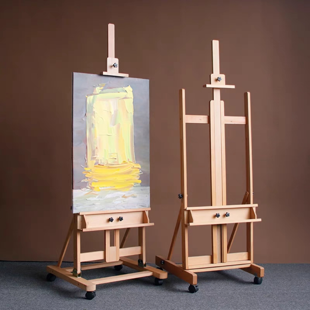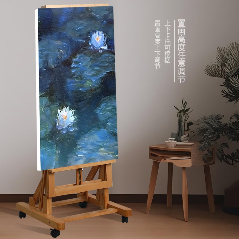 蒙玛特 榉木大画架平立两用油画画架可升降落地实木油画架木制素描画架子多功能画展示架室用带轮