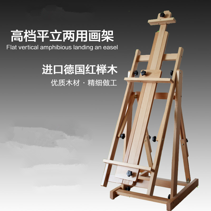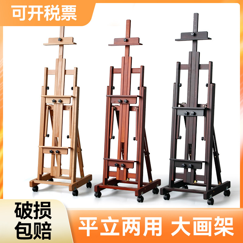 加大款榉木制支架式落地伸缩折叠油画素描画架多功能平立两用画架