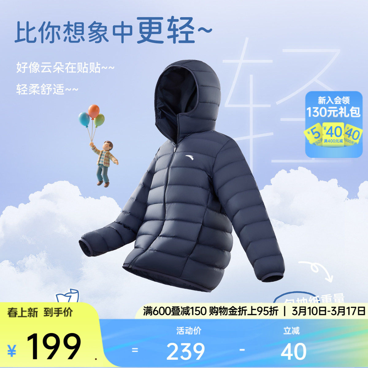 - 新款轻薄羽绒服男